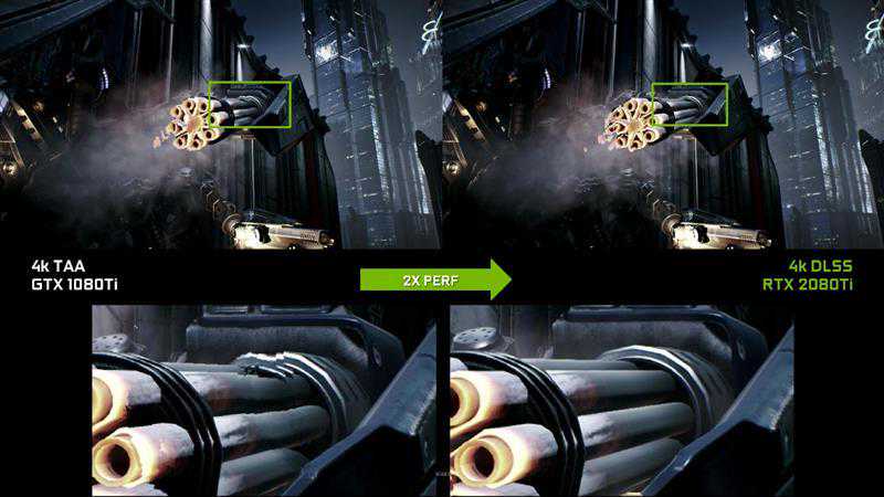 不用于以往任何抗锯齿技术,DLSS使用图灵核心中的Tensor单元来进行运算,不需要消耗CUDA单元,因此不会对显卡的性能造成任何损失,不过却能得到等同于TAA(时间抗锯齿)的画质。