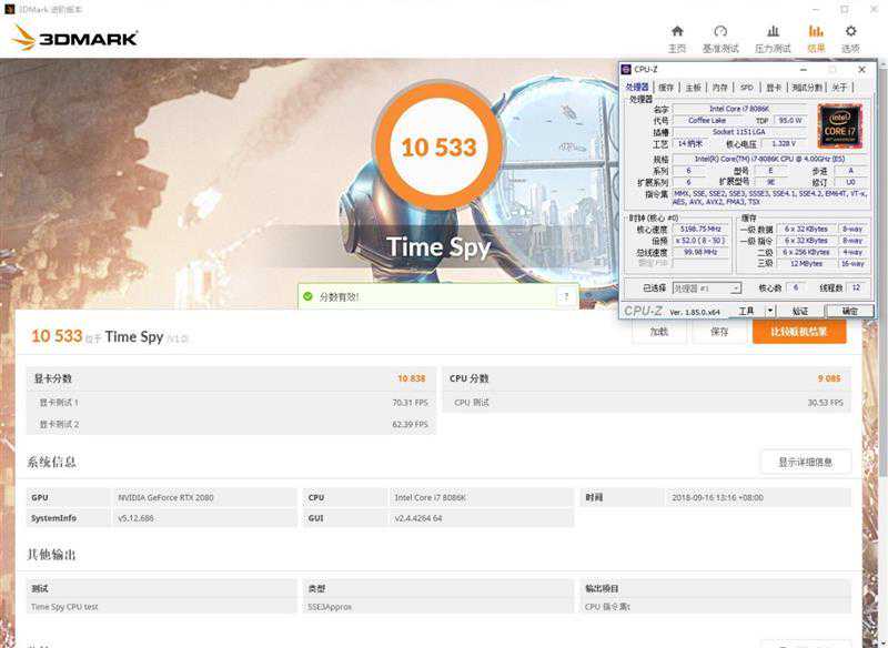 这是RTX2080的测试成绩,左边是开启了DLSS,分数为4547,右边则开启了TAA模式,分数3353。