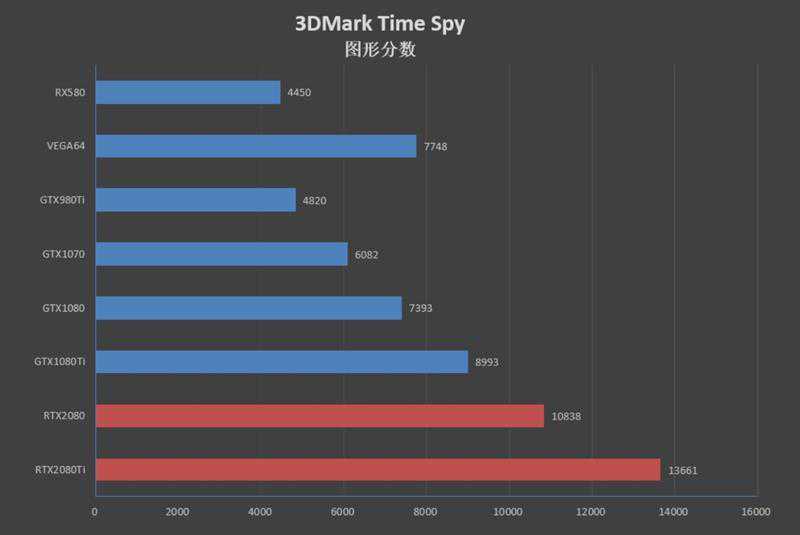 RTX2080相比GTX1080有36%的领先幅度,和GTX1080Ti相比,也能领先13%。