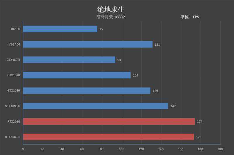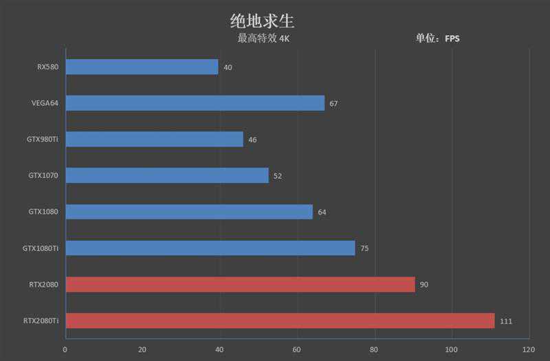 4K分辨率下,RTX2080Ti在《绝地求生》中也能跑出111FPS的帧率,领先GTX1080Ti36帧。