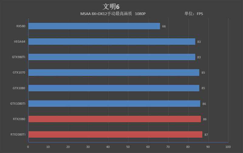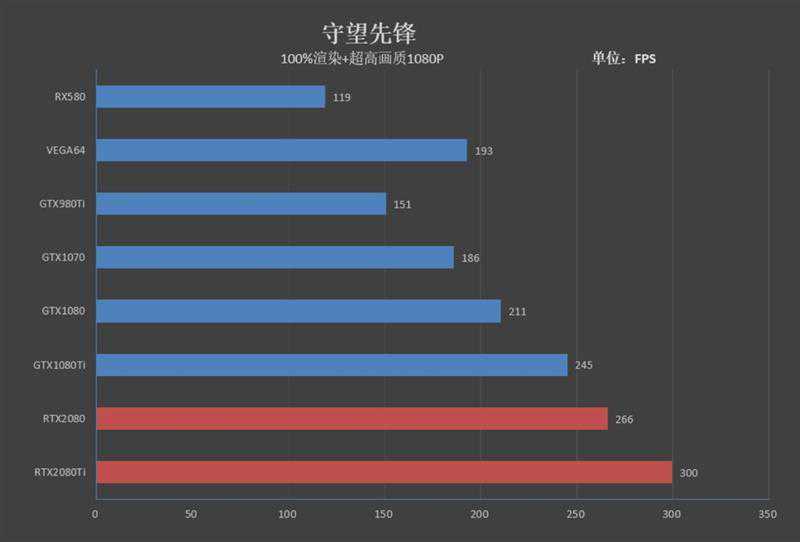 RTX2080的帧率为97FPS,领先GTX108031帧,领先幅度为47%。