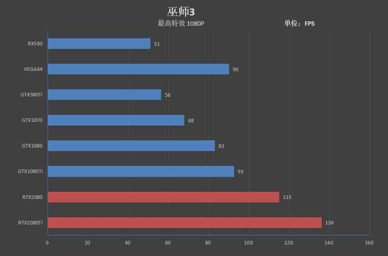 在《巫师3》中,RTX2080Ti的帧率为82,领先GTX1080Ti28帧,领先幅度为52%