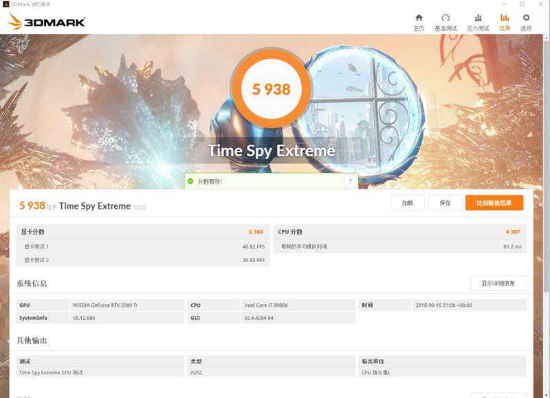 这是RTX2080Ti的测试成绩,左边是开启了DLSS,分数为5812(很奇怪,超越了没开AA的分数,测试3次均是如此),右边则开启了TAA模式,分数4219。