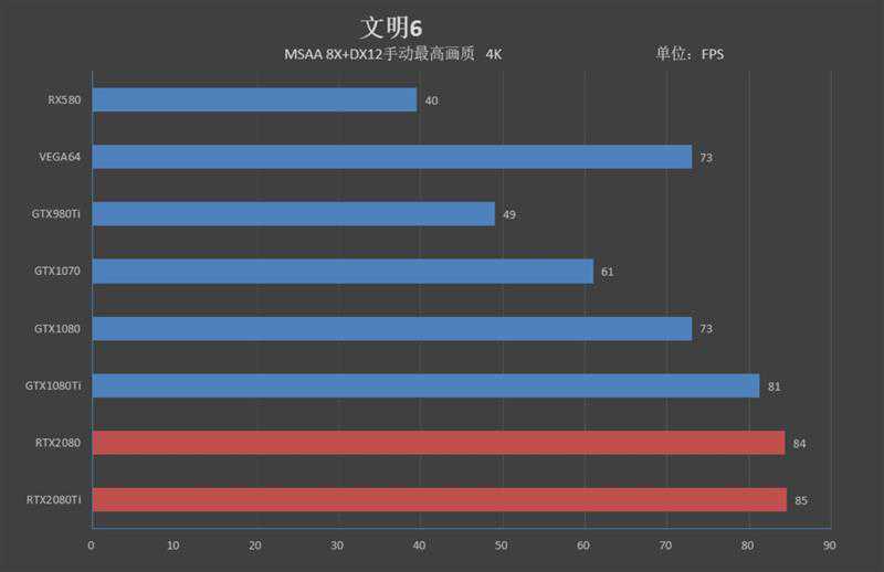 RTX2080帧率为73FPS,领先GTX108018帧。