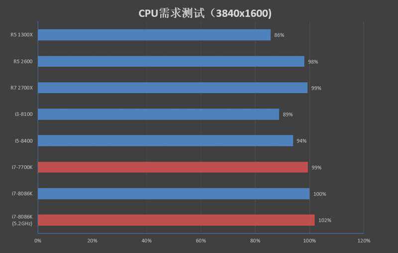 以下是3840x1600分辨率下7款CPU的测试成绩汇总: