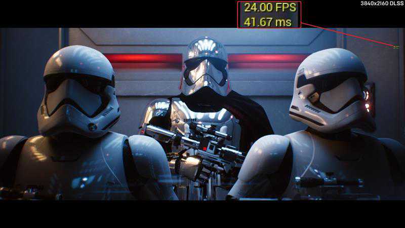 由于星球大战DEMO锁定24FPS,RTX2080与RTX2080Ti都只能跑出24帧,即便如此,也达到了GTX1080Ti7倍以上的性能。