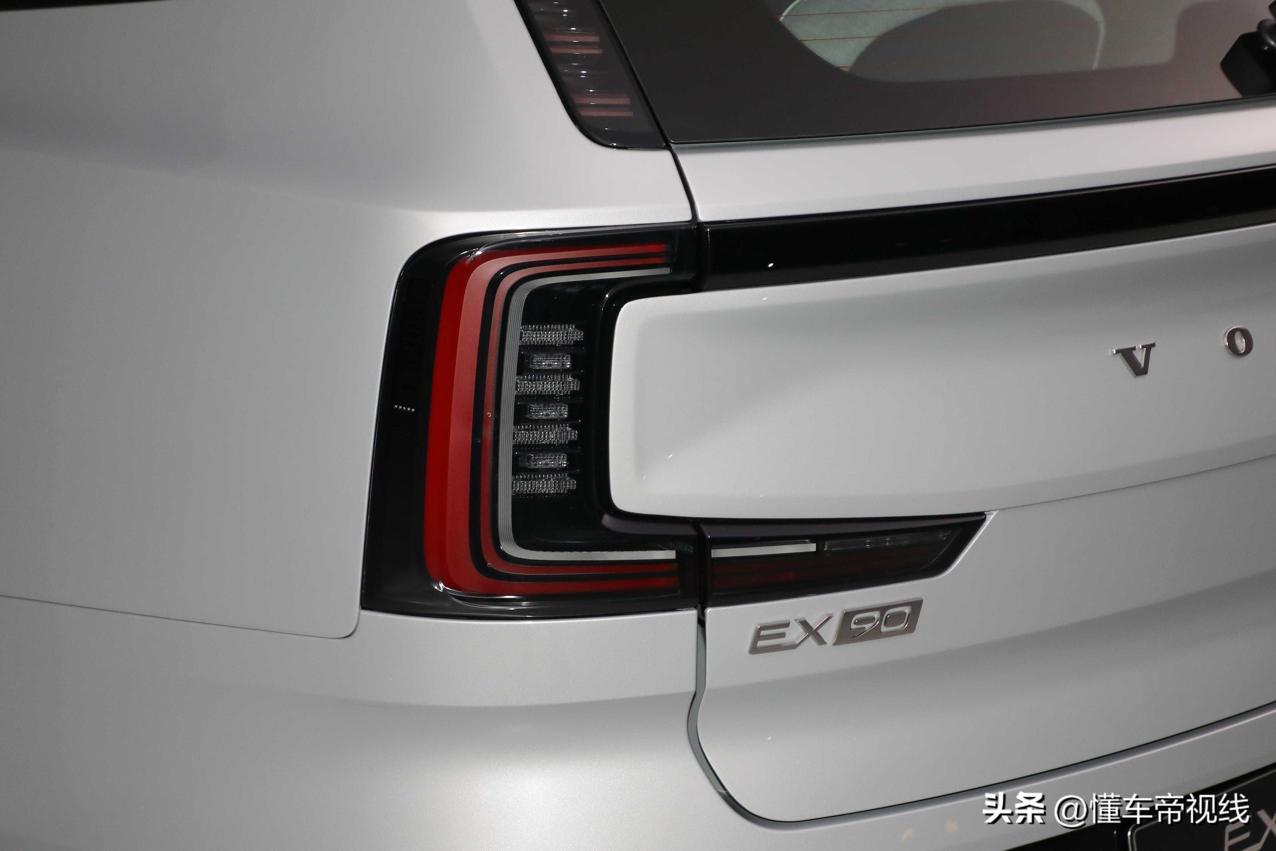 沃尔沃EX90尾部造型较为方正,尾灯整体造型虽然还能看出现款XC90的影子,但进行了分体处理,下半部分点亮后呈现出“C”字形样式,保持了沃尔沃家族的辨识度。另从其中文标识可以看出,它将是一款国产车型。