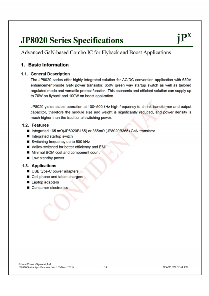 产品被台达、创维、晶元等国际大厂采用,并获得国内多项经济部奖励和补贴,并入选JPX为国家重点企业。近期,JPX与多家国际厂商在GaNHEMT、智能电源、USB-PD等技术开发方面展开合作,提供最优的电源系统解决方案。JPX立志于提供最好的系统整体解决方案、技术服务,成为国内行业未来电源管理的先行者。