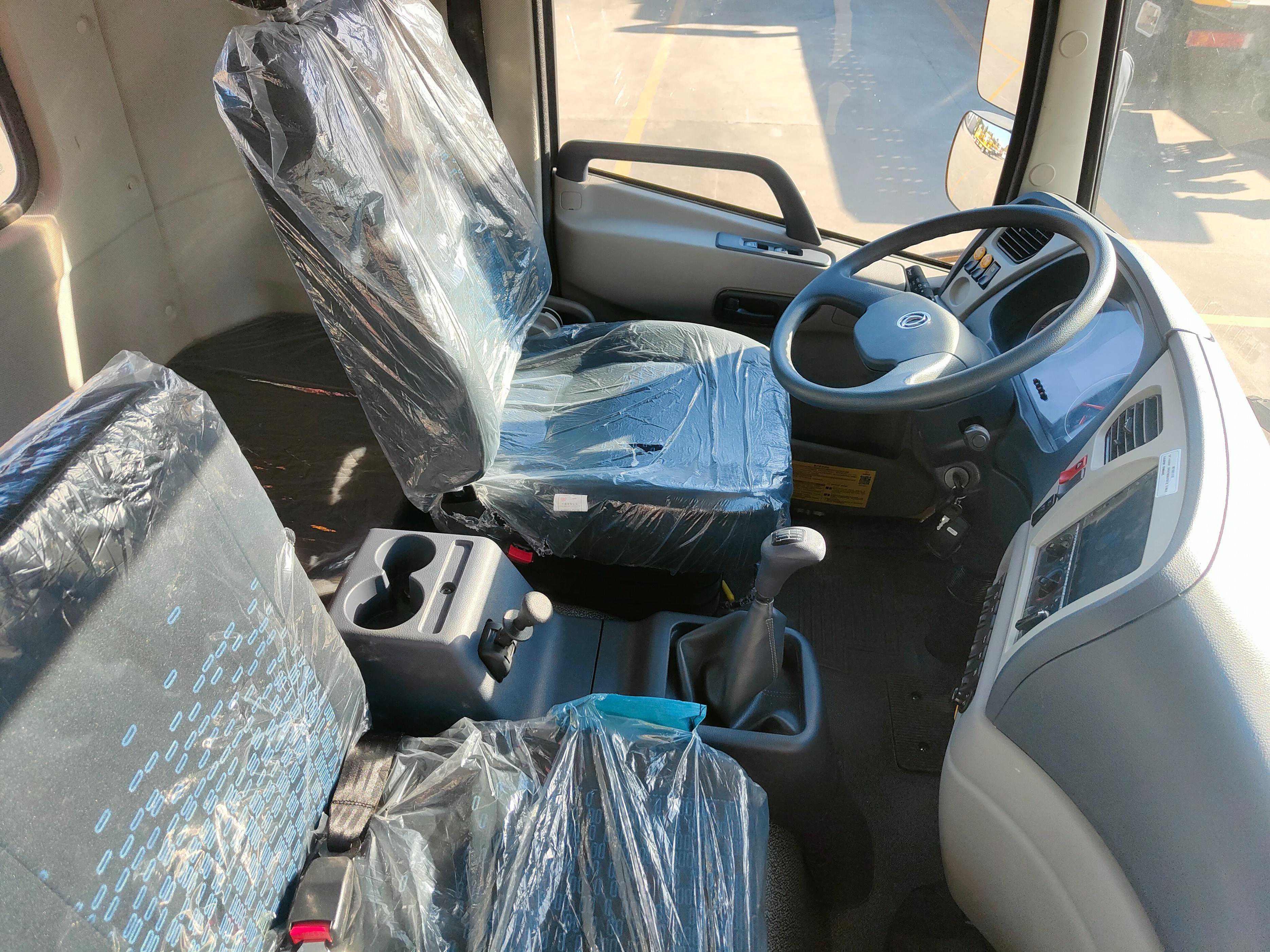 东风天锦DFH1100B2底盘:KS低顶排半驾驶室,3人座,气囊座椅,电动门窗、冷暖空调;东风康明斯发动机,4.0升排量,最大功率118KW发动机(160马力);万里扬6档变速箱;轴距4500mm;轮胎8.25R16LT16PR真空钢丝胎;断气刹、ABS。