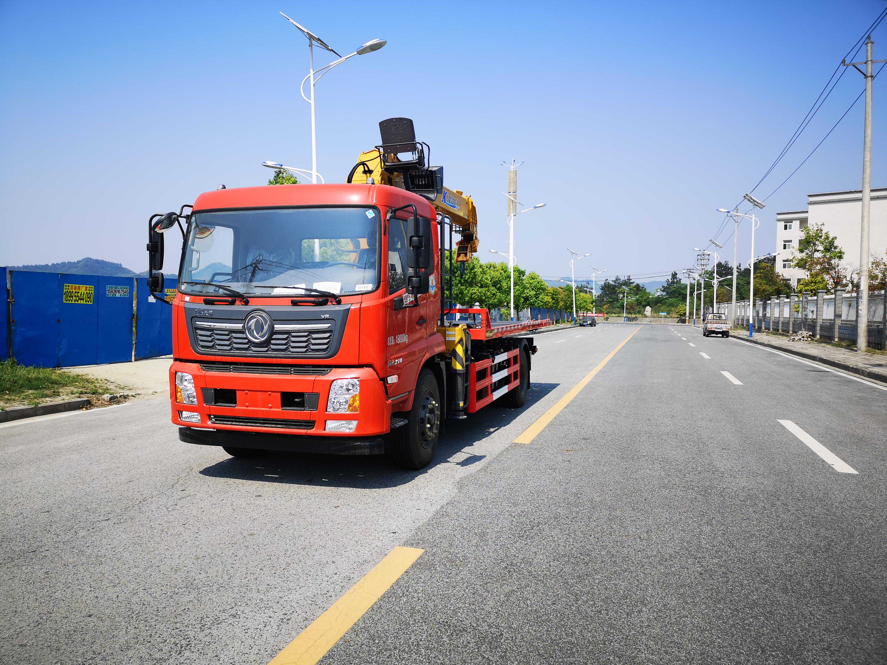 东风天锦DFH1180B5随车吊专用底盘:天锦D530平顶排半车身,3人座,空调、气囊座椅、电动门窗;东风康明斯发动机,6.2升排量,最大功率154KW(210马力);法士特8JS85E八档高低速变速箱;5000mm轴距;300mm直通三层车架;前桥4.5吨,后桥9吨;10.00R20钢丝胎;断气刹、ABS。