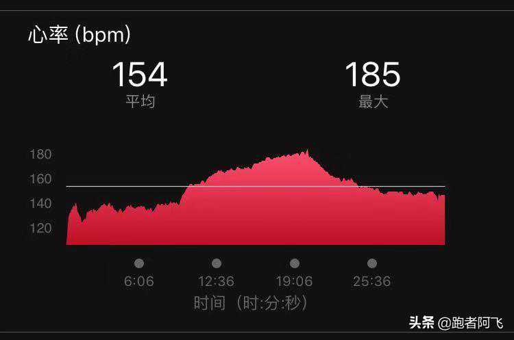 下图是PacerApp的心率带的图,平均154,最大182.(图形上是153,数字154,四舍五入的结果,平均在153-154)