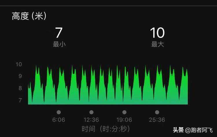 下图是Fr245的高度图,真的是太完美了,400米跑道15圈,15个高度波形。虽然和这次心率测试没有关系,但是真的太喜欢Fr245的高度图了。