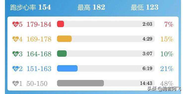 下图是PacerApp的心率带,各心率区间的时间统计,