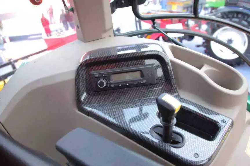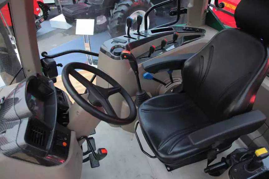 进入驾驶舱后感觉还是比较宽敞的,据雷沃重工研发人员介绍,雷沃阿波斯拖拉机在整车舒适性方面同样具有国内同类产品不可比拟的优势,传统的驾驶室内噪音一般超过93分贝,而此款产品卓越的人机设计、良好的驾驶室选材及密封性可以将声音控制在82-85分贝,几乎就是我们日常交流的声音