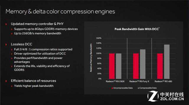 半导体工艺对芯片性能、功耗的影响是根本性的,根据官方资料,AMD选择的三星14nmFinFET工艺使得显卡运行电压降低了150mV,功耗降低了30%,所以架构使用的14nm工艺相比28工艺能提升70%的每瓦性能比,但在AMD优化之后,新显卡的能效比最终达到了前代水平的2.8倍。