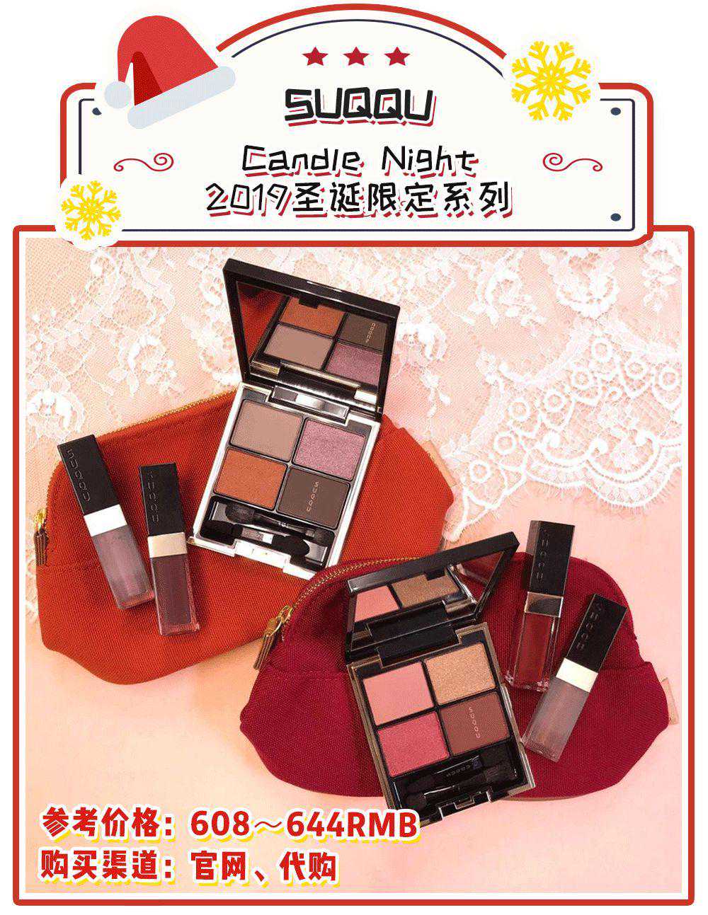 彩妆新晋大咖SUQQU,今年圣诞瞅准了欧美和亚洲两大市场,分别推出了日本限定和英国限定,以「烛光」为主题的限定款,一眼望去一片blingbling的。