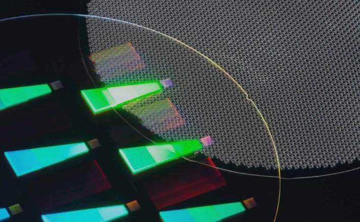 具体来看,镭昱采用量子点色转换技术,基于大尺寸硅基氮化镓(GaN-on-Silicon)外延片和彩色化涂层,其Micro-LED芯片垂直结构通过专有的共阳极(CoANODETM)技术集成于CMOS晶圆上。
