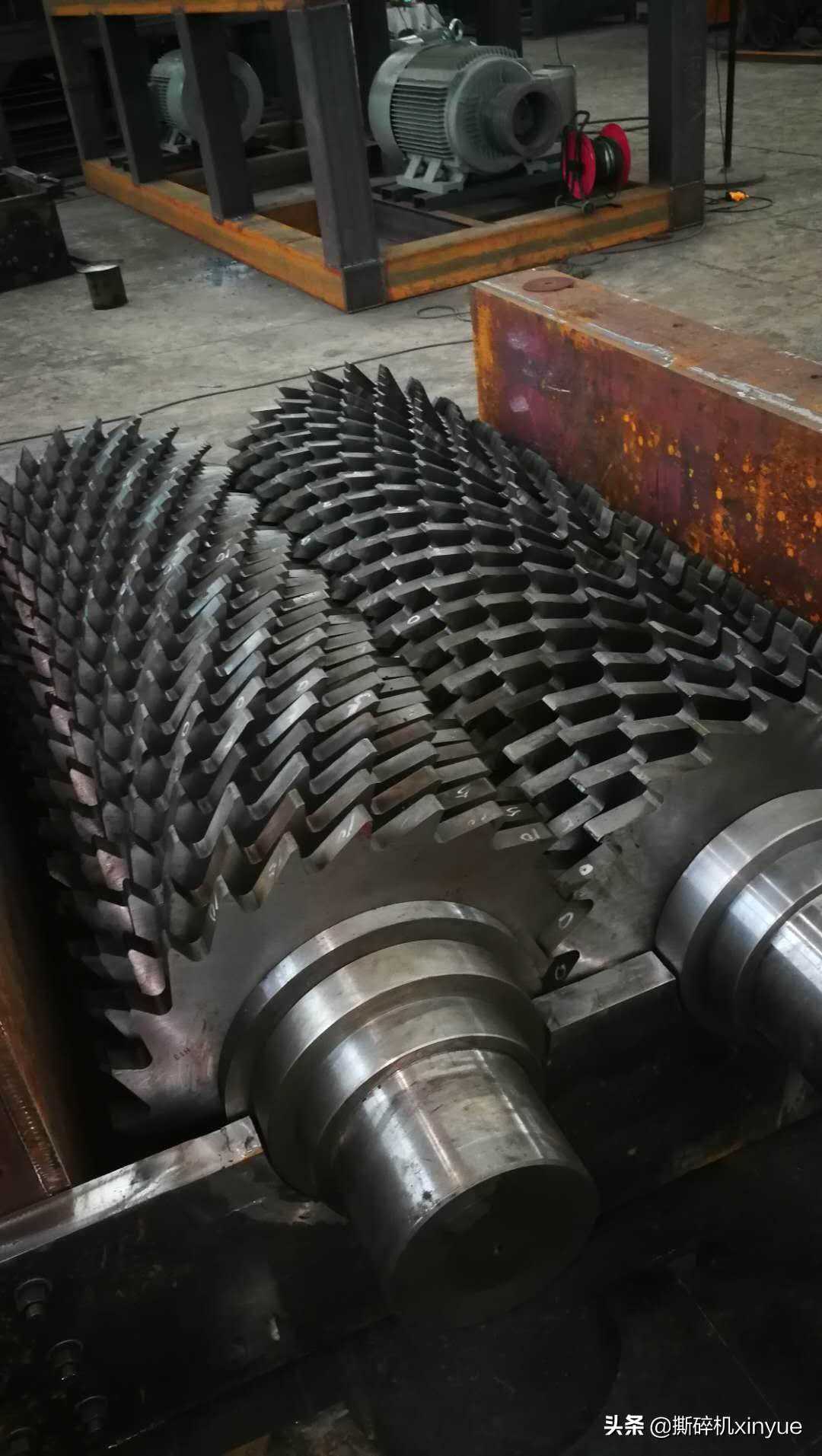 鑫悦机械生产的废纸撕碎机设备适合各种废旧纸类材物料的撕碎,具有出料均匀、大小可控等优点,其采用两套装有撕碎刀片的转子在设备机腔内相对旋转从而采用收缩两轴夹角的原理对进入机腔内的物料进行挤压,由于刀片的特殊设计进入两轴夹角后的物料被刀片棱角固定从而进一步为夹角的收缩创造条件,在物料受力达到物料屈服强度后物料在刀片间开始断裂,从而完成撕碎效果。