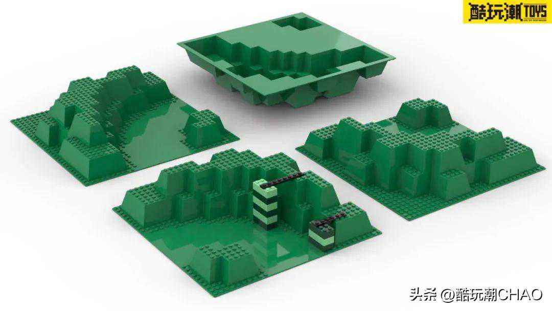 在这款套装中还有一种替换版本的33214pb04底板,和33214pb03印刷了一模一样的黄色鹅卵石和绿色常青藤图案,唯一的不同是右边坑洞多印刷了一处蓝色池塘。