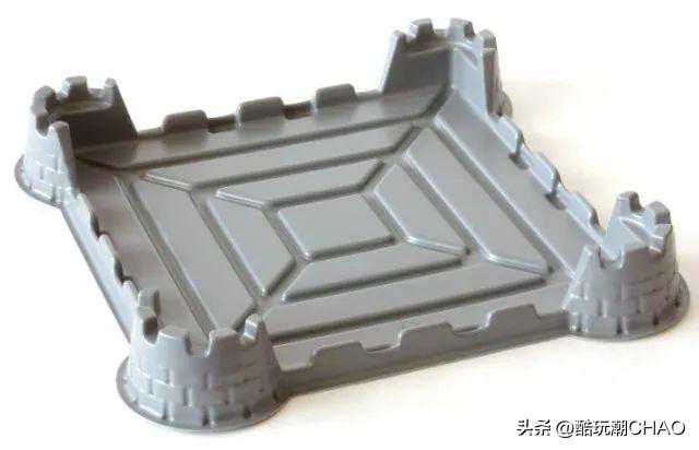 这块也是很奇怪的底板,整体是平银色的城堡造型,并不附带任何印刷。表面也没有任何凸起的颗粒,但内部的空间刚好是32×32的尺寸,在城堡系列—王国系列的2012年的套装853373棋中用来容纳一块32×32的薄底板。目前这块异形底板也仅出自这款套装。