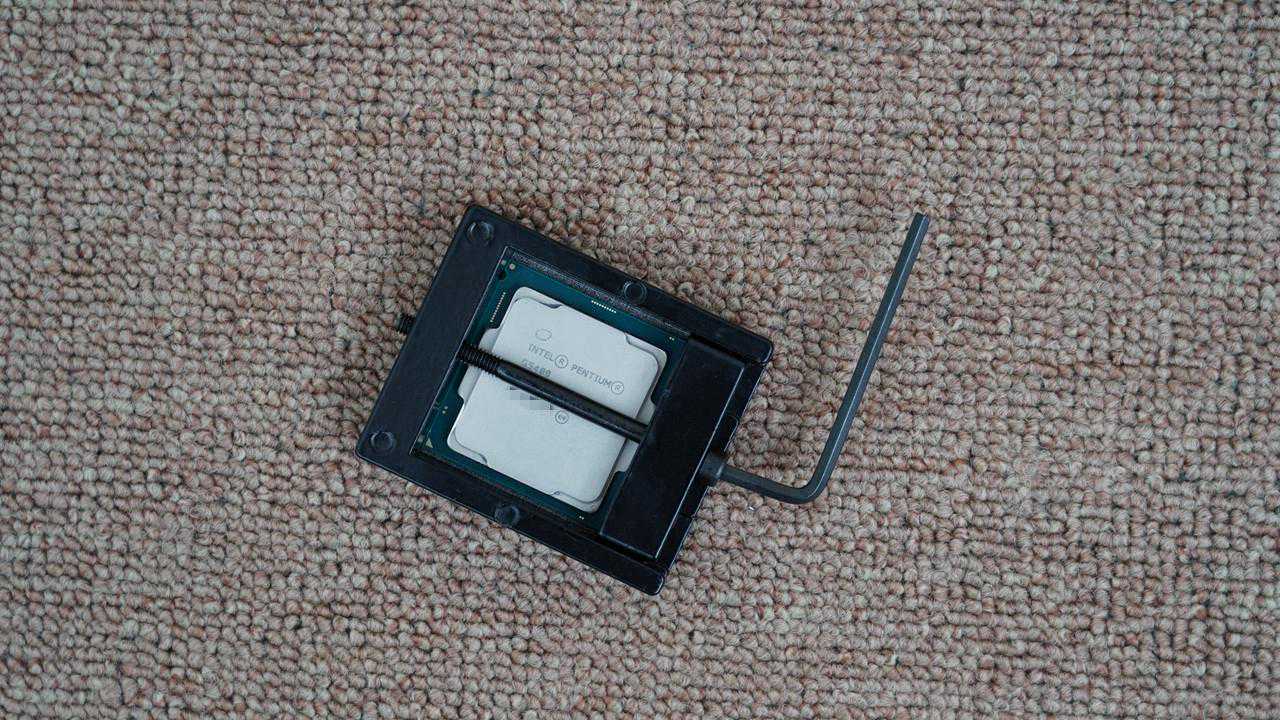 具体来说,原方案存在两大问题,一是CPU是笔记本改造而来的QL3X,而且还是ES版的,考虑到NAS对硬件的稳定性要求较高,所以这次将其更换为正式版的奔腾G5400;二是之前的乔思伯HP400散热器虽然体积够小巧,但散热效能有些不够,即便是应付双核心的奔腾G5400也有些吃力,故而这次将散热器换为规模更大的ID-COOLINGIS-50X。同时由于G5400内部的硅脂有点干,所以对其进行了开盖操作,并将硅脂更换为液金。