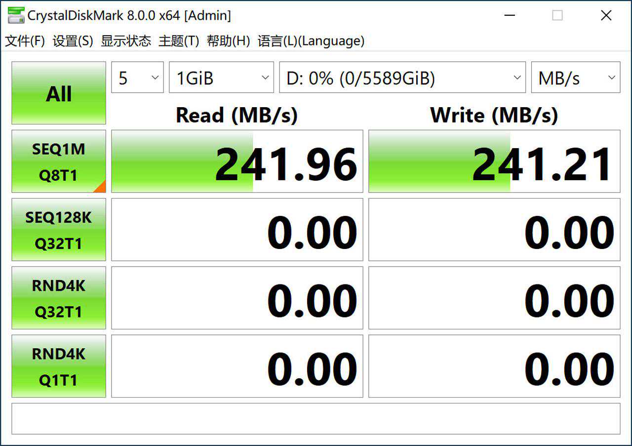 趁着还没装NAS系统,在Win系统下给硬盘跑个分,可以看出,硬盘的顺序读写水平还是很不错的。