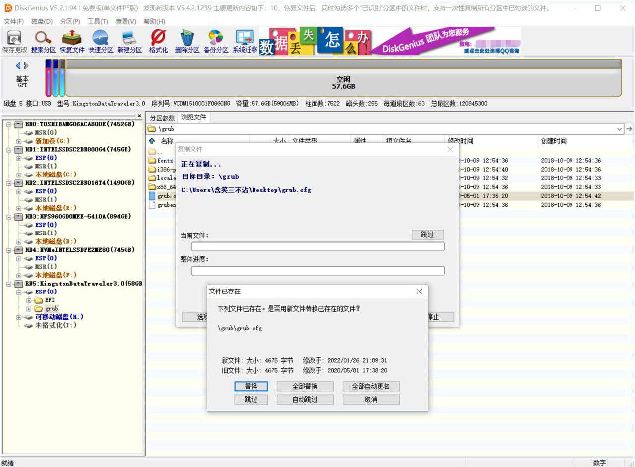 修改好后,直接用鼠标拖到磁盘精灵的右侧栏,弹出提示,直接点全部替换。