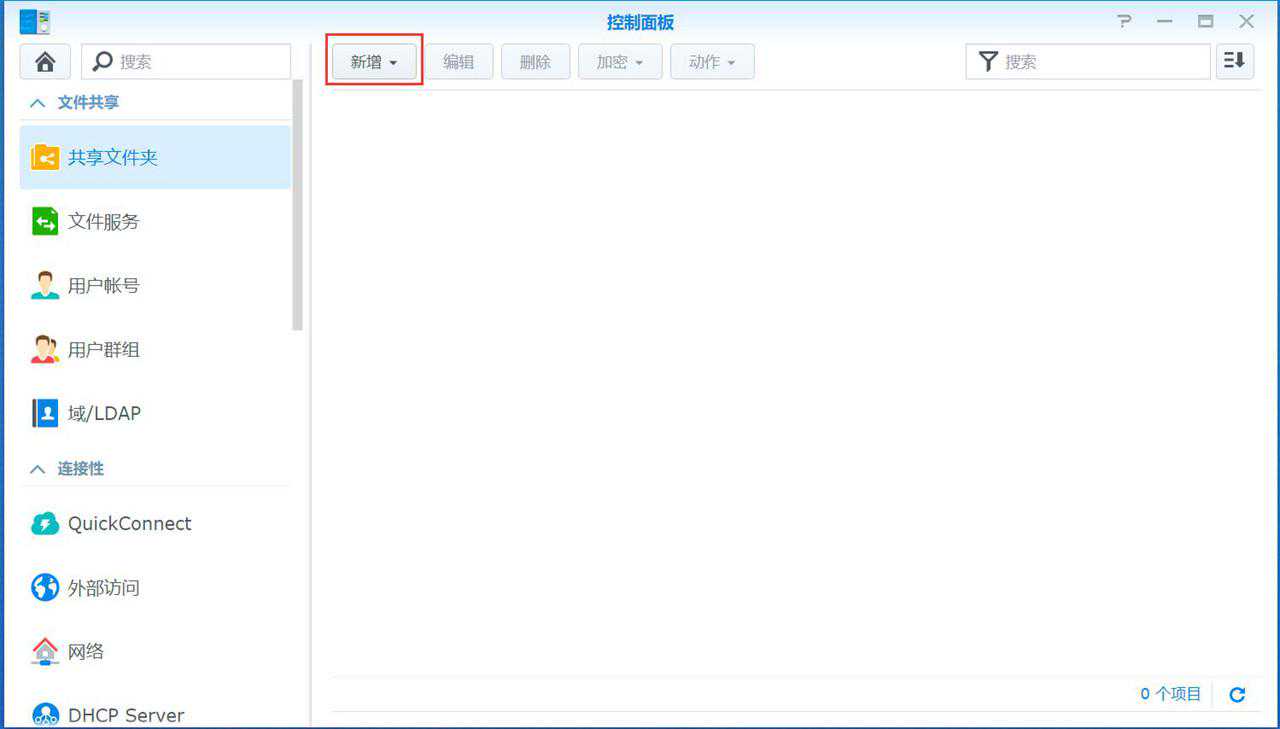 接着打开控制面板—共享文件夹,新增共享文件夹。