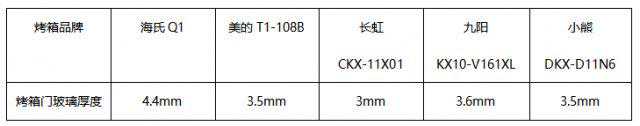 于安全性,玻璃越厚,玻璃受热爆炸的风险也就越小;于锁热效果,烤箱门越厚、密封性越好,热量也就能够被锁在箱体中,保温效果自然会更好。编者对五款产品的玻璃门厚度都进行了测量,结果如下: