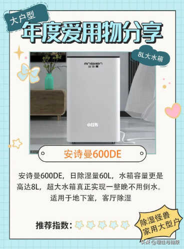 安诗曼600DE,日除湿量60L,水箱容量更是