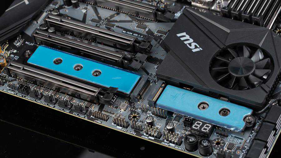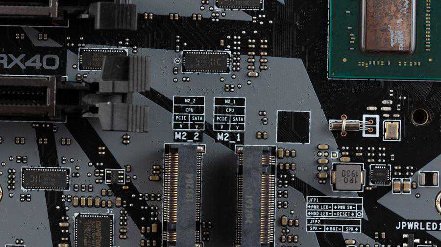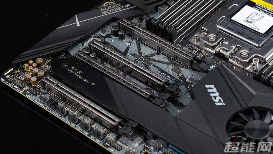 而且微星还在主板PCB上写着这个是由哪里提供的,用户就不用再去翻说明书看那个接口是直连CPU的了,CreatorTRX40主板位于PCI-E插槽之间那两个接口是直连CPU的,而内存插槽旁边那个接口则是由南桥提供的。