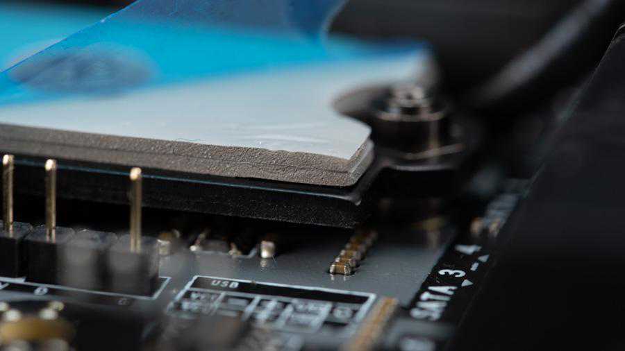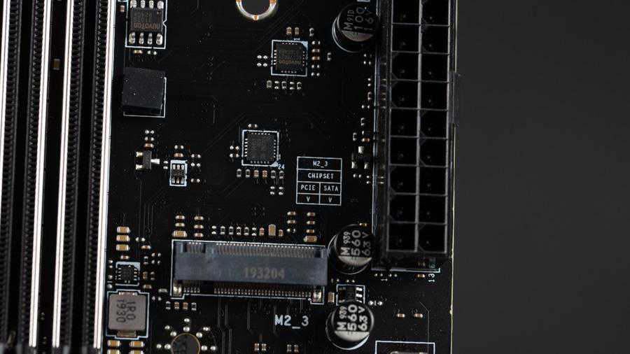 主板上有三个接口,其中一个支持规格,另外两个支持,全部接口都支持和SATA6Gbps,它们都有散热片照顾,而且是正反面双重散热,主板在的背面也配了散热器,这种设计还是第一次见,现在主板的散热器只能照顾SSD的正面,而大容量SSD的背面其实也有闪存的,现在微星主板这种设计就能很好的把背面的闪存也照顾到了,背面的散热器上有两层导热贴,如果单面SSD的话确实需要两层才能接触到PCB背面,但如果是双面的SSD的话就需要把一层导热贴弄下来才能安装SSD。