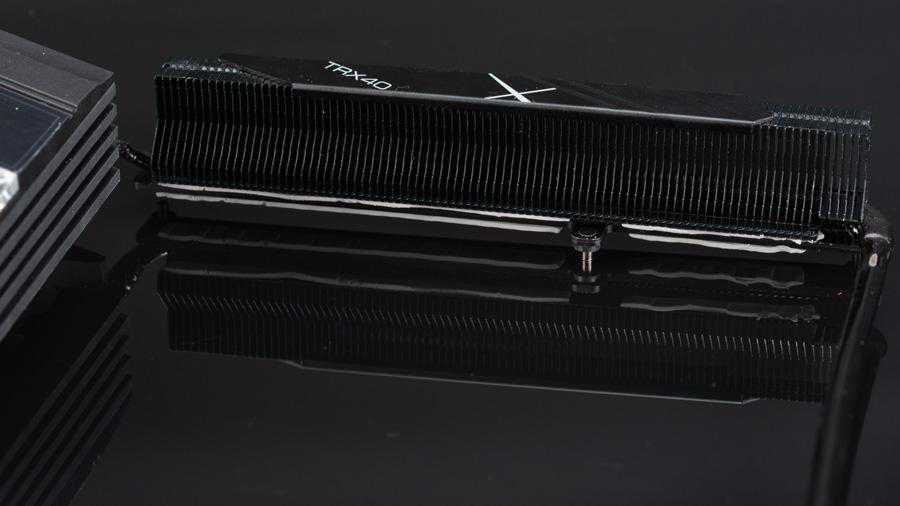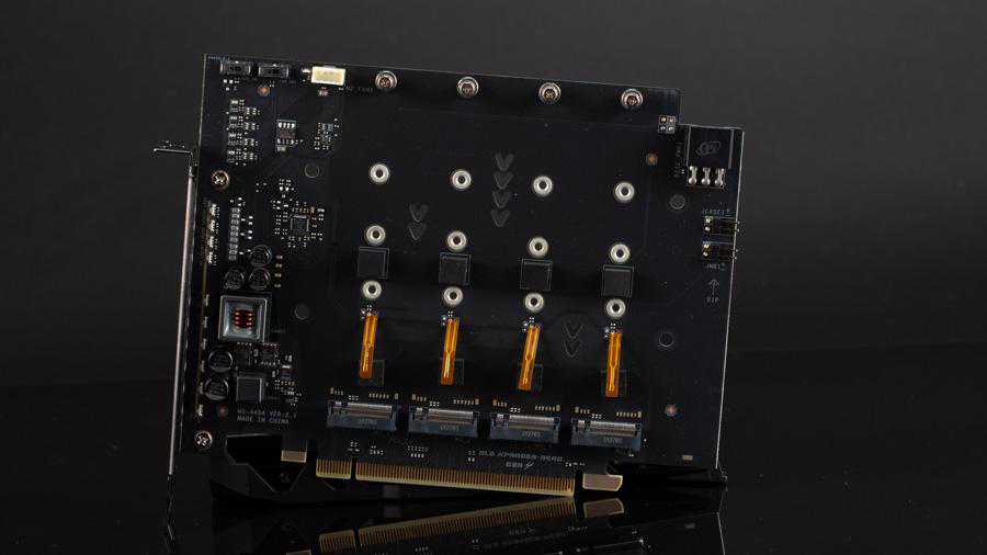 这块扩展卡可以安装四个的SSD,每个SSD都准备了一个温度探头,可以使用微星的软件查看SSD的温度状况,散热器则是纯铝的,还有个6pin供电接口。