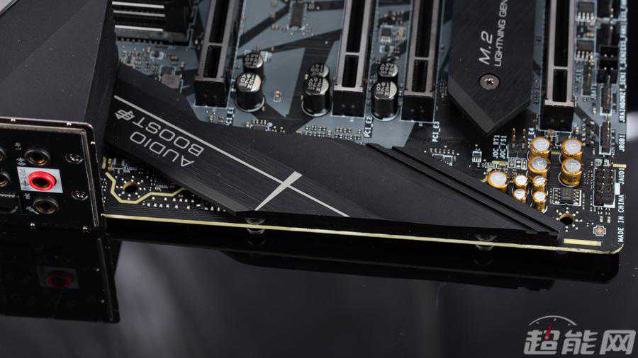 音频电路位于主板左下的独立PCB空间,音频控制器被I/O装甲所覆盖