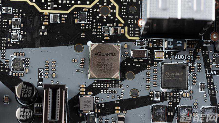 AquantiaAQC107万兆网卡,旁边的AsmediaASM3242芯片为主板提供一个接口