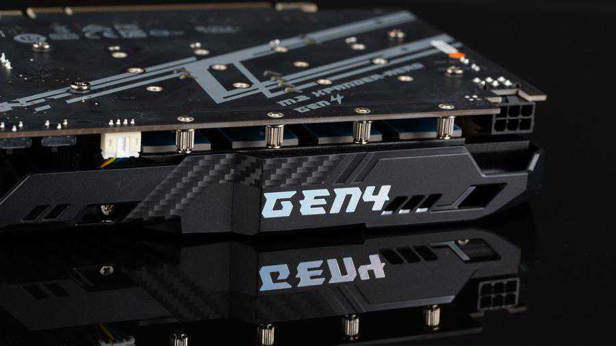 第三代锐龙线程撕裂者处理器可提供64条通道,当中有8条是需要用来连接南桥的,另外有两组4条的是用来连接存储设备的,还有48条是通用PCI-E通道,这全部都被分配到主板上4根PCI-Ex16插槽上,这4条插槽第一和第三根是全速的,第二和第四条是,四条插槽全部都有金属装甲加固。