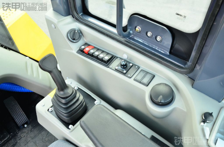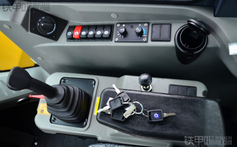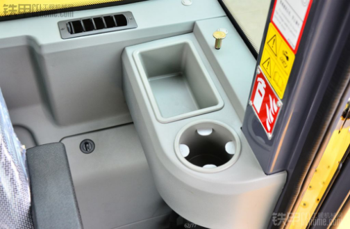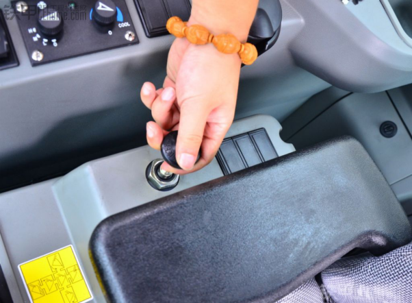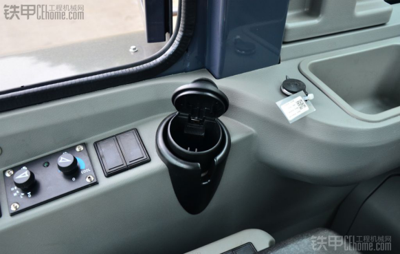 图中右侧一个储物盒,这个东西太方便了,我认为这个设计非常好,像我们在工地,签时间的单和笔就可以放在那里,不会掉容易找。图中左侧一个是烟斗,记得上次去徐工,有人建议为什么不在驾驶室做一个烟斗。设计人员说“装载机不建议开车抽烟,以前的车有设计,不过取消了”。大多数用户建议还是要有,徐工这次又重新设计了,我个人认为有也好,不抽烟的还可以将烟斗拿掉,可以放矿泉水。驾驶室开关安装在了装载机驾驶室的右边。这个座椅看起来高大上,用起来也是高大上。挺少见在腰部那里有个调节器,调腰部高低,座椅挺大,但是这个白灰色看起来就是不耐脏。