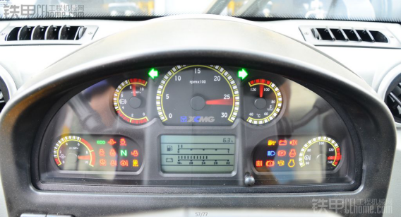 驾驶室中的油门、刹车都是用的胶。好处在绝缘和防滑,工程机械进行作业的时候,如果万一不小心碰到电了,与铁相比,胶有绝缘的作用。驾驶室仪表台,看起来做的像卡车的仪表。有油表显示器和油耗实时监控。有三种模式: