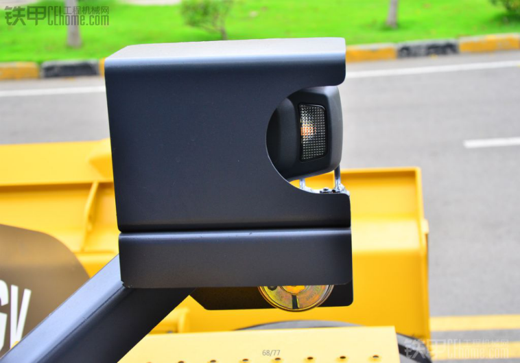 大灯加了铁,这样设计在翻斗清理土的时候不会把灯给震坏,小面积的土砸下来也不会把大灯给砸坏。