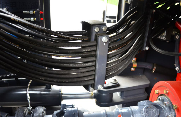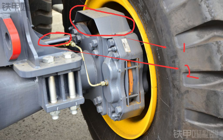 刹车有刹车保护装置。图中1保护刹车钳,图中2保护刹车油管。在装载机烂土黏物质的时候难免会掉入刹车系统,有这个装置相对好很多。变速箱的标配都是配的徐工MYF200电控变速箱变速箱也是穿的新衣服红色的。交接油管,油管布置的非常好,不会乱的都是很整齐,终于治好了我20多年的强迫症。