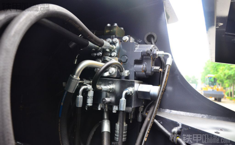 转斗油缸也是喷黑灰颜色,有油缸保护装置,这样设计第一是美观,第二有保护油缸,很多人是石厂做事,有的装载机没有油缸保护的,直接跑输送带地下铲,把油缸都给弄花,就会导致漏油。