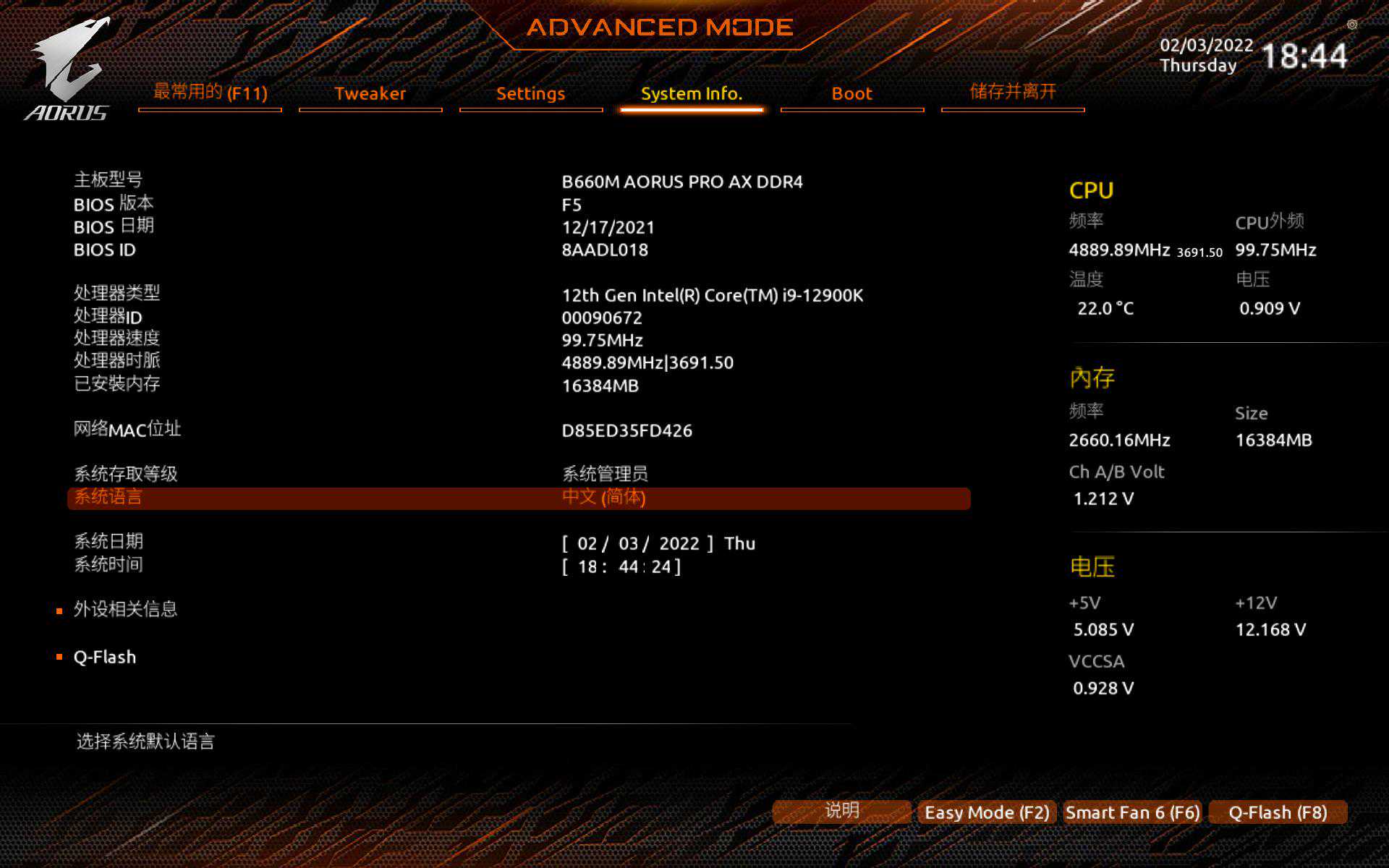 主板:技嘉雪雕B660MAORUSPROAXDDR4