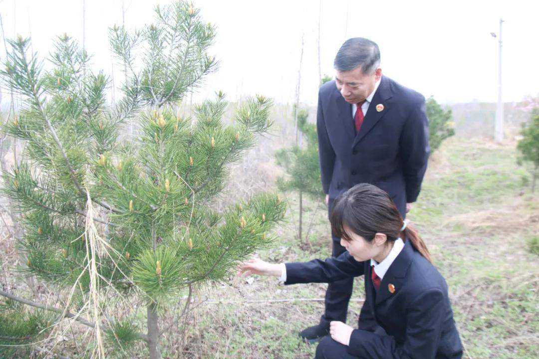 3月21日,河南省郏县检察院检察人员查看复植补种树木情况。