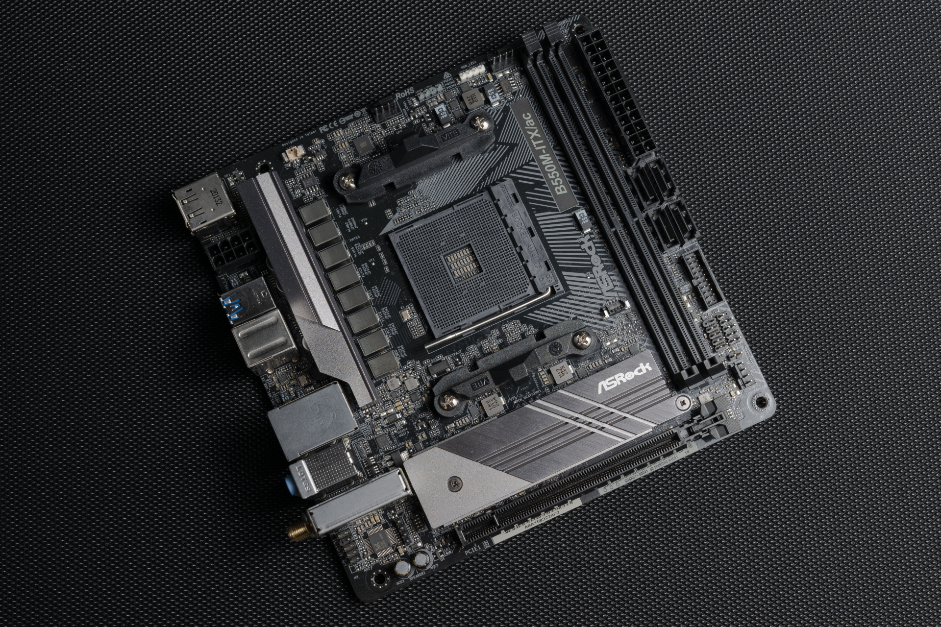 ▲这款主板比其他家的ITX便宜了500块,比自家PGI便宜了400块,那么作为交换,外观也就中规中矩了,不好看也不难看,但是一眼就能看出来这主板相对于其他B550ITX丐了不少。。。