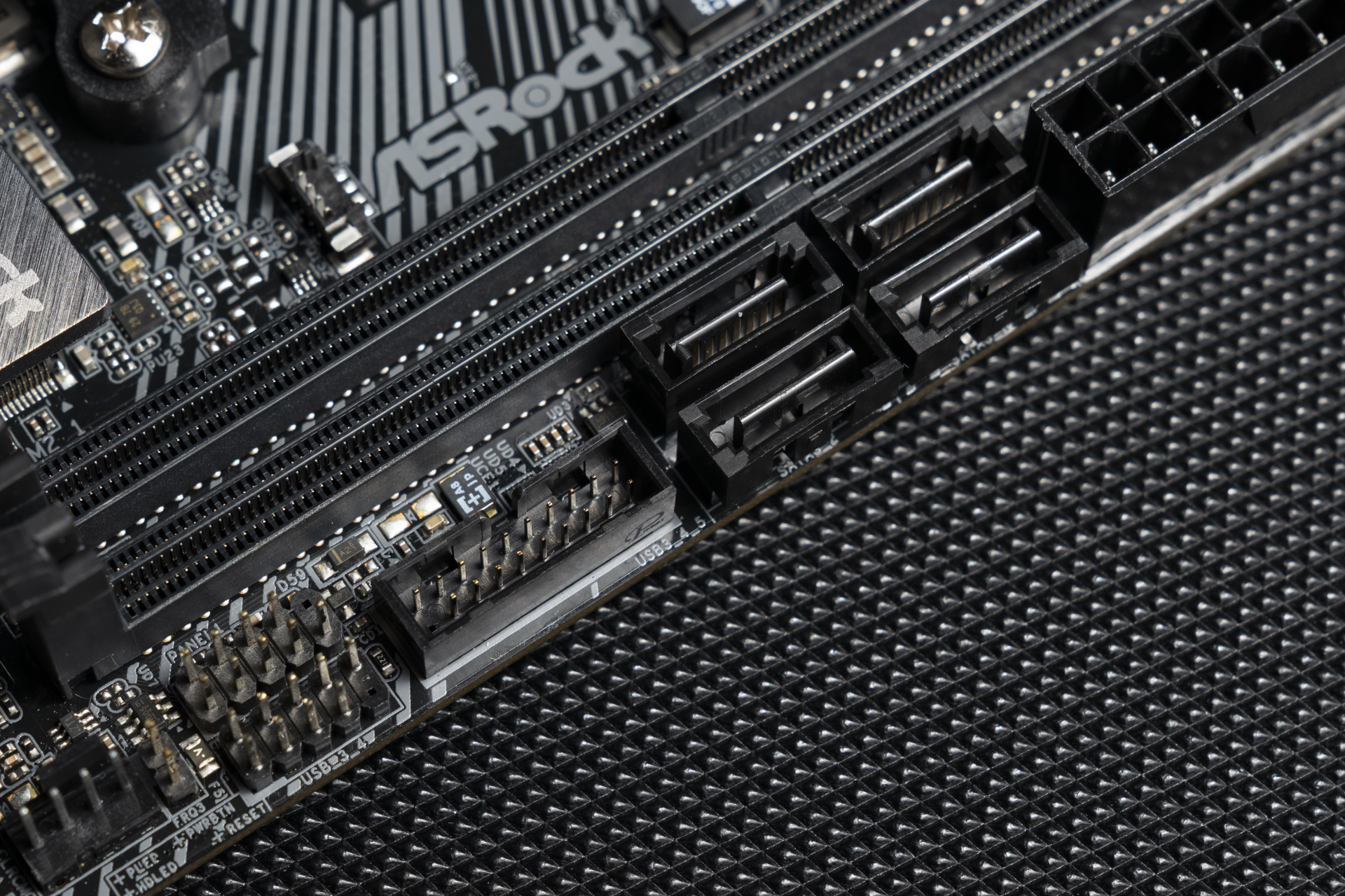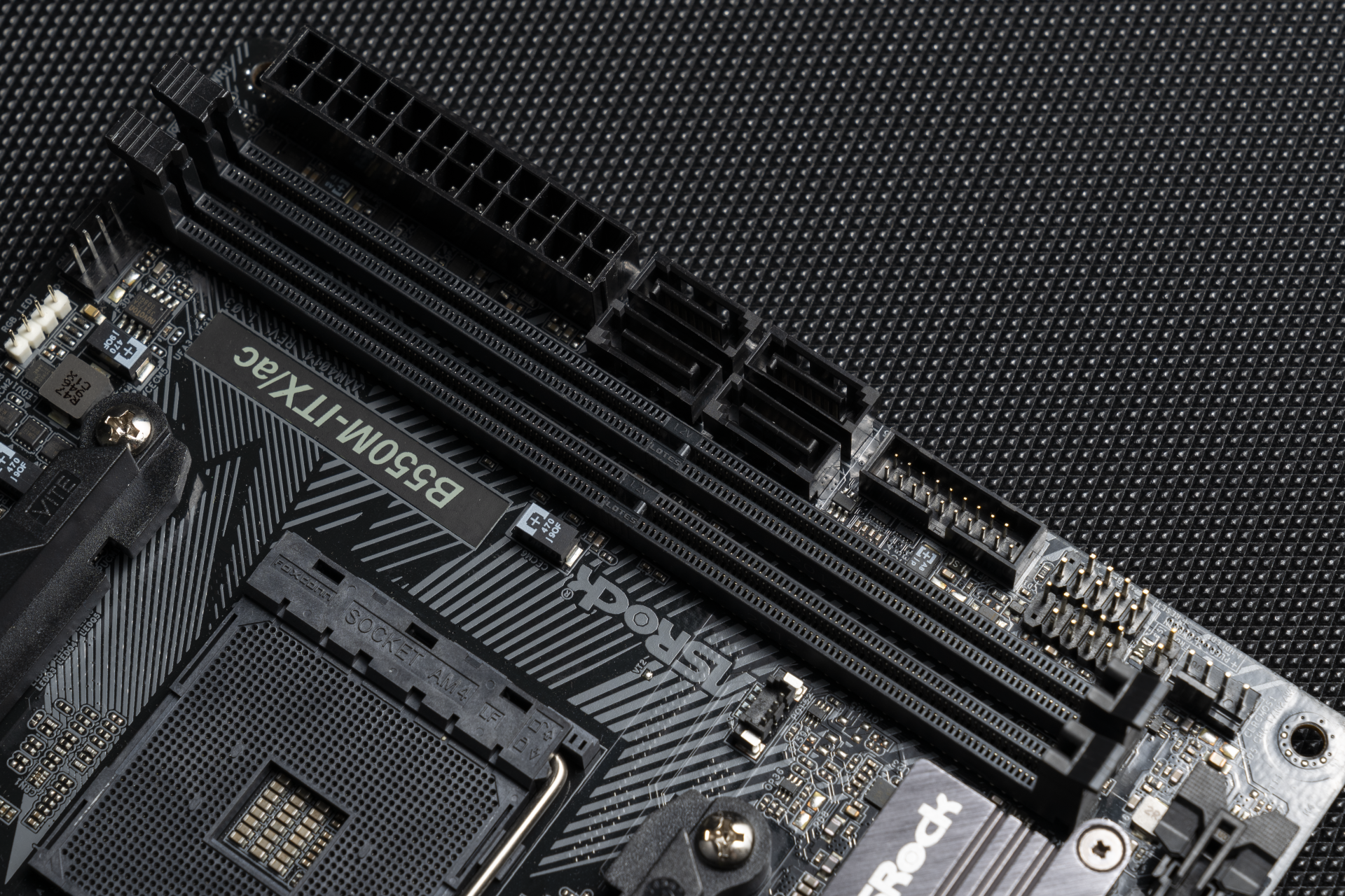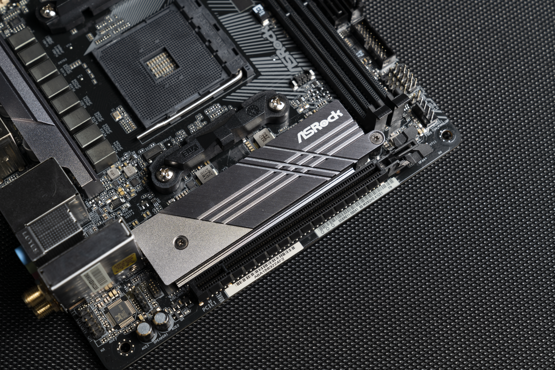 ▲主板的正下方是马甲+PCIe插槽。散热马甲做了磨砂和金属拉丝的设计,虽然简单,但是我还真就吃这一套。