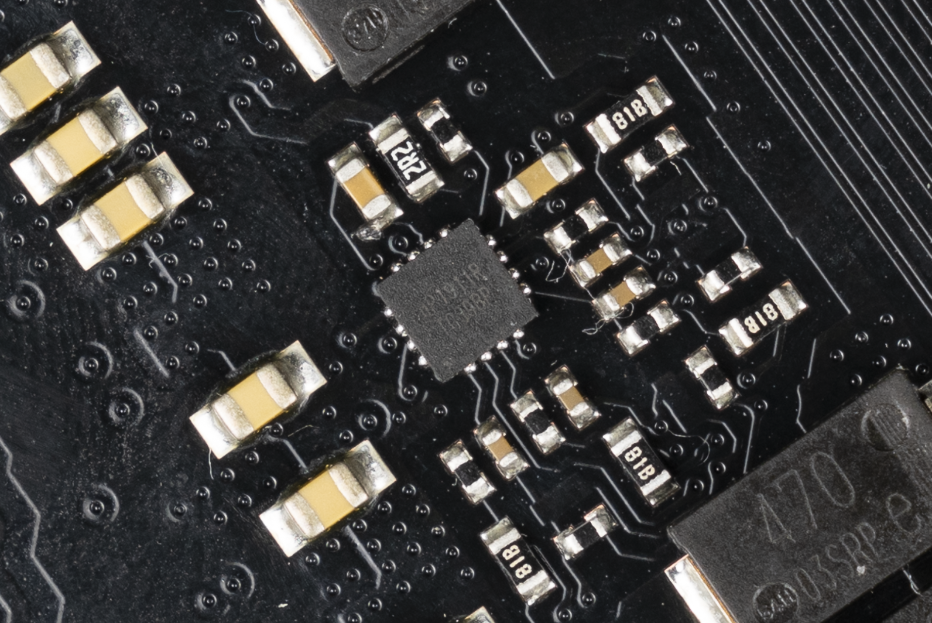 ▲来自MXIC(旺宏)的MX25U25673G,这颗是BIOSROM,用于存储UEFI、AGESA模块,主板开机的重要芯片,单颗大小为256Mb(32MB)。