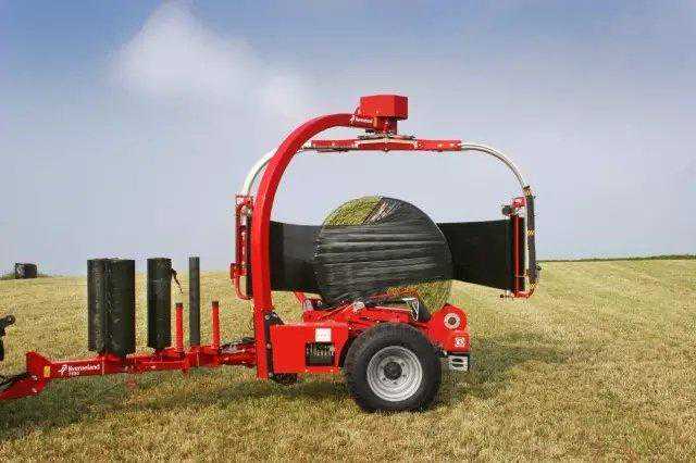 前支架定位在靠近草捆位置,限制包膜过程中薄膜内的空气数量。一旦包膜完成,在下一个草捆形成过程中,完成包膜的草捆会被手动或自动卸下,手动操作时,驾驶员可以选择更合适的草捆位置,例如可以把草捆放在一条直线上,方便捡拾。