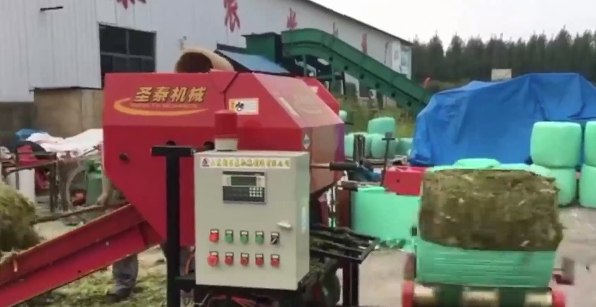 这台秸秆处理机可以完全实现全自动操作,像自动报警、自动捆绳、开关仓、包膜和翻包,整个过程可以实现无人操作。打包后的饲料裹包两层可以储存一年以内,裹包三层可以储存两年以上,也不受气温的影响。