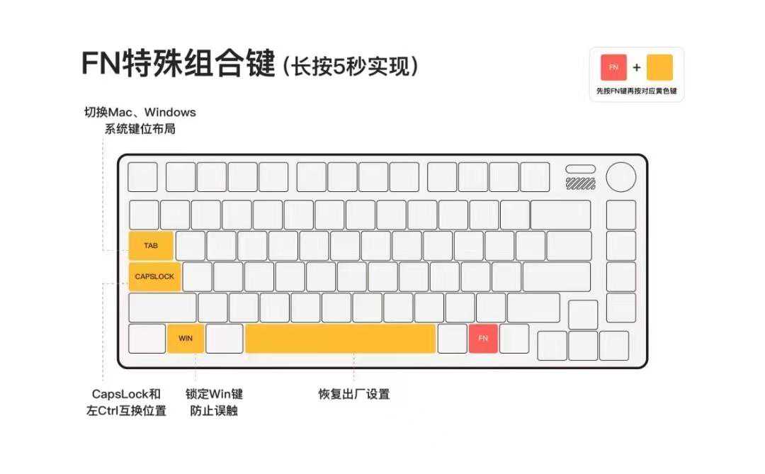 75%布局、81按键的方案,设计得很紧凑,但键盘键位之间又有足够的空隙,不容易误触。
