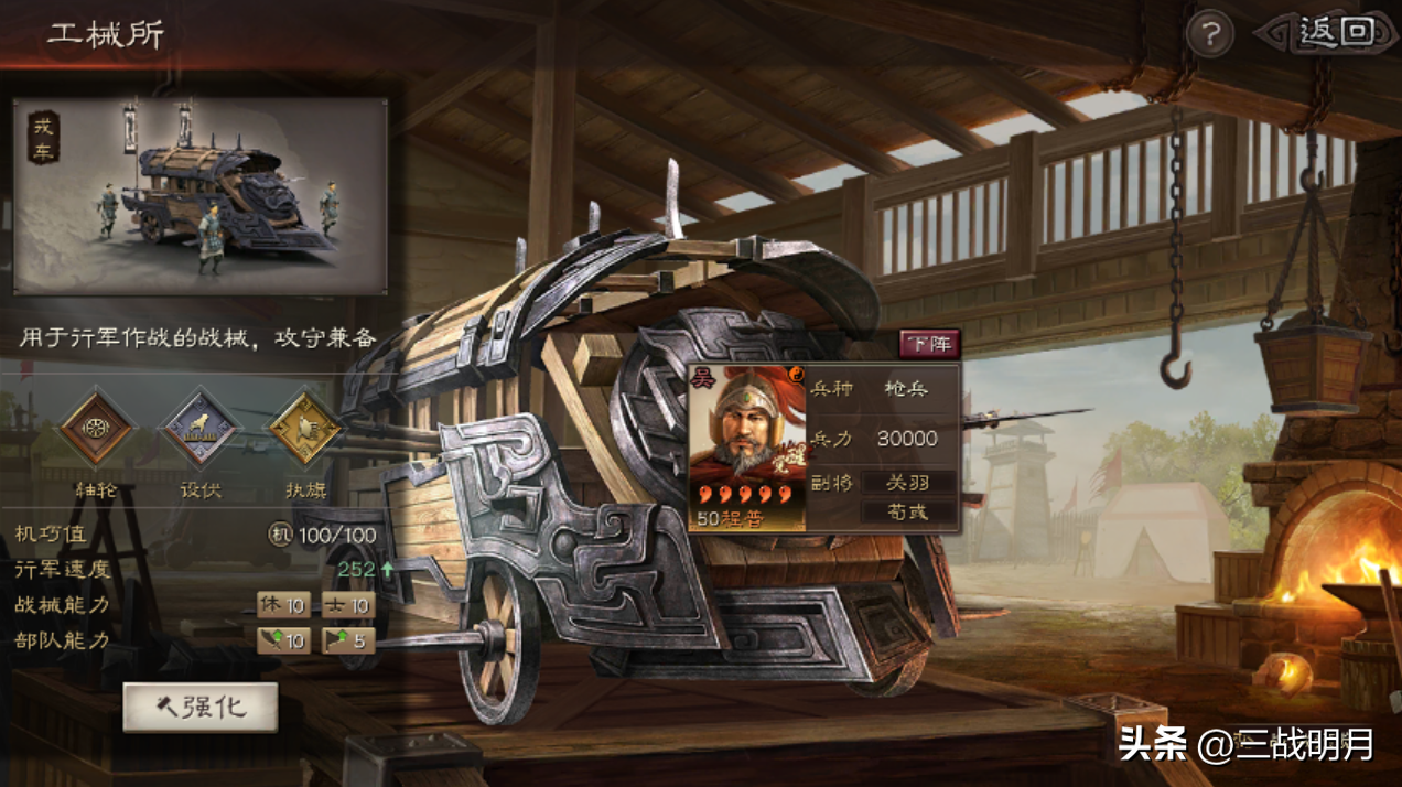 大家好,我是三战明月。三国志战略版,新玩法,工械所。决定打架胜负有很多因素,武将,战法,兵书,装备,红度。新出的工械所,毫无疑问增加了队伍强度,让打架队伍胜率提高了不少。具体的玩法如下:工械所共分3种......